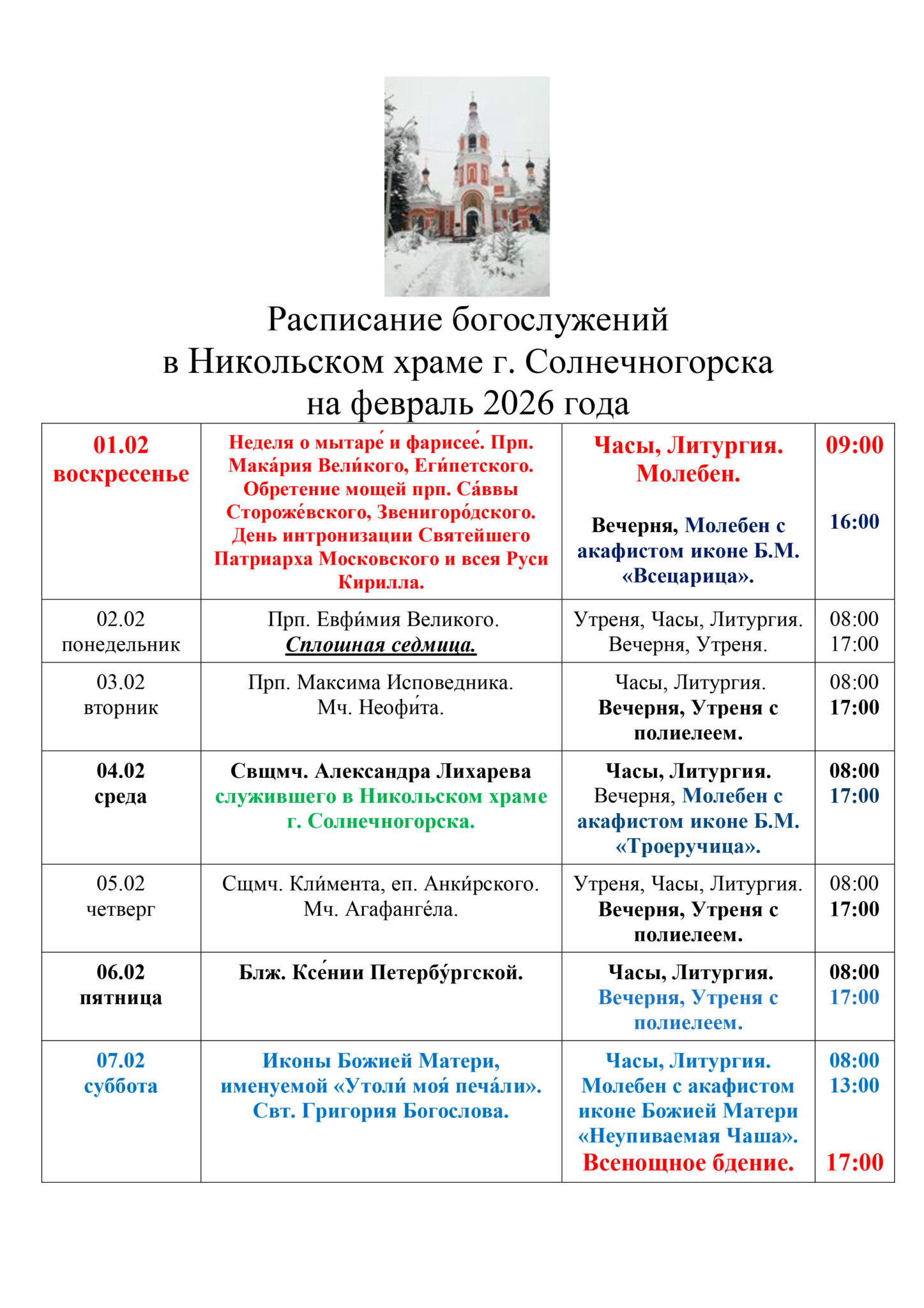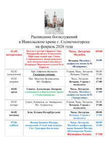 РАСПИСАНИЕ февраль 2026г. Никольский
