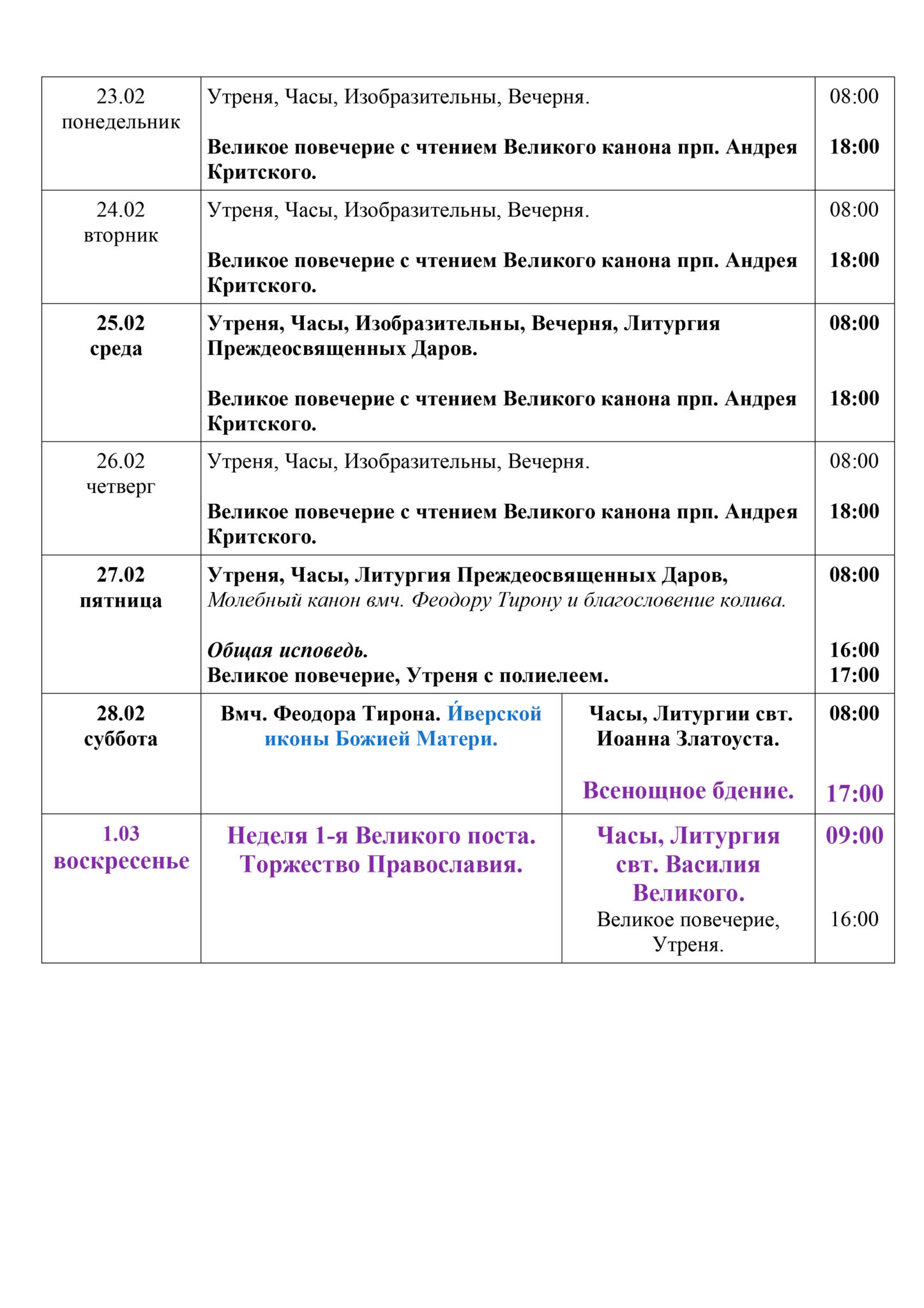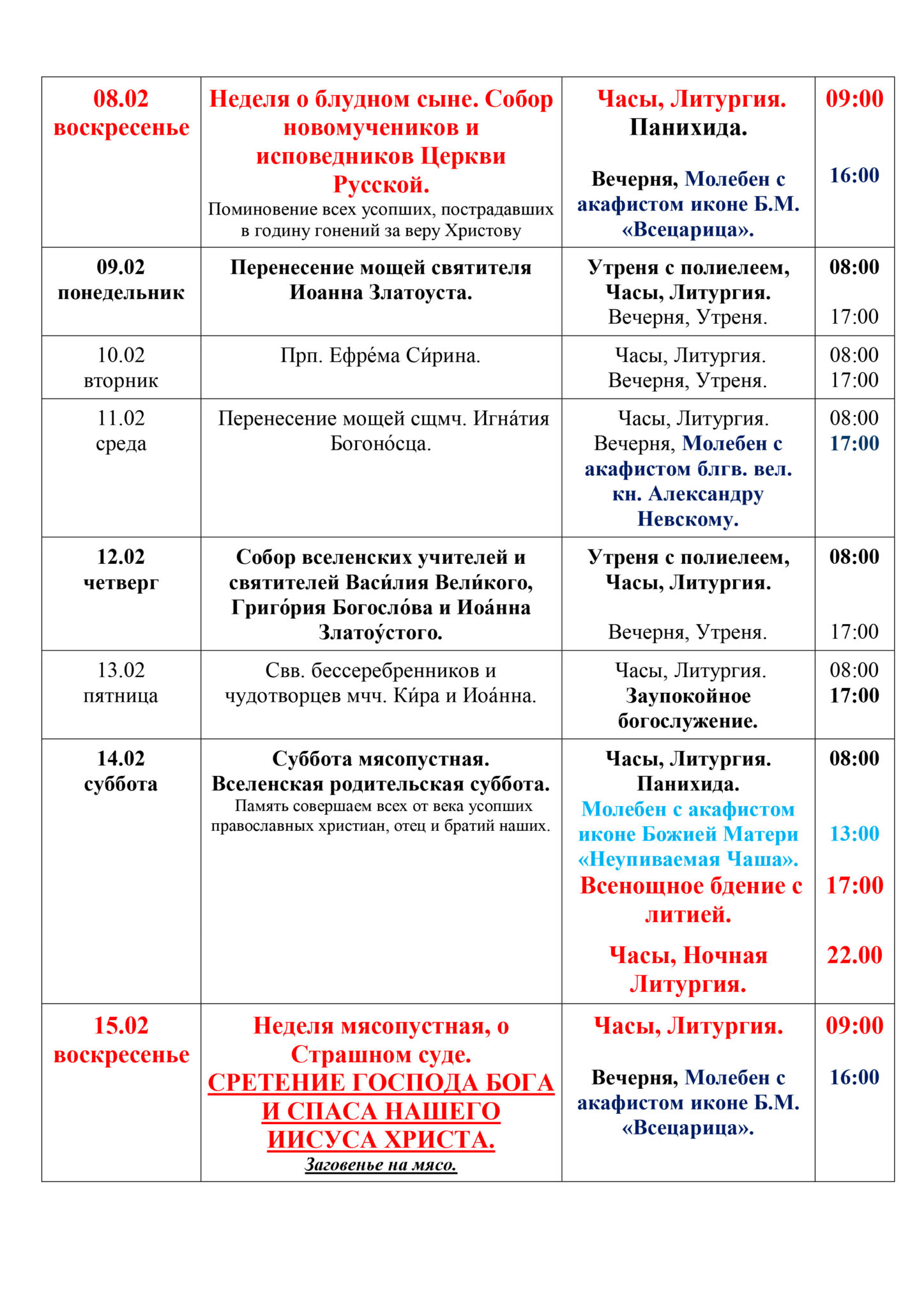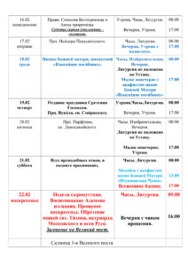 Расписание богослужений